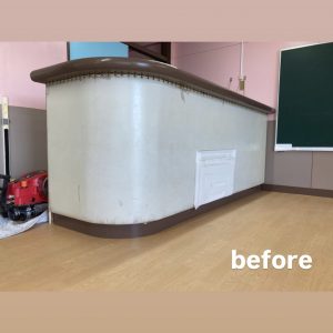 幼稚園のカウンター下の布団張りを張替えました